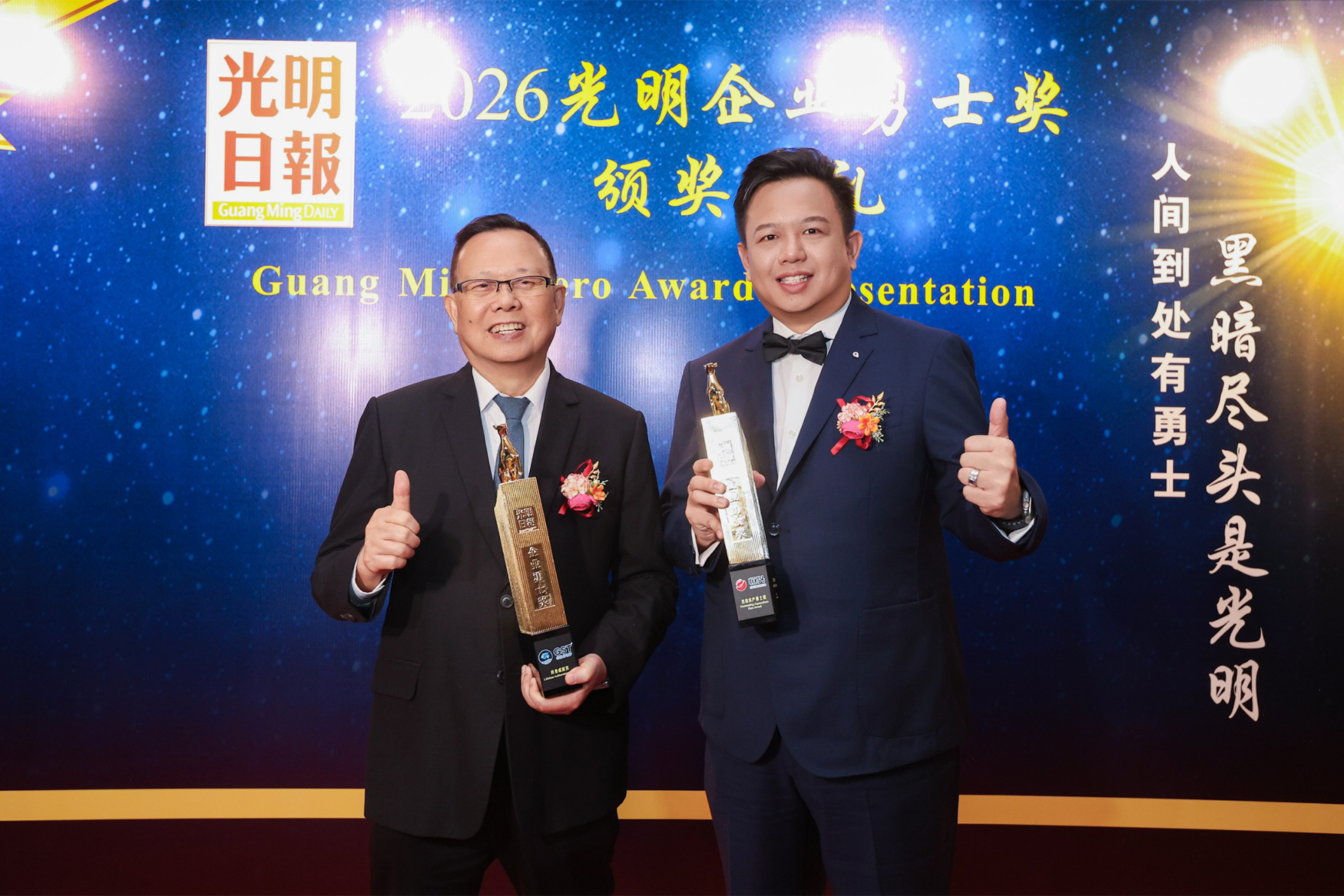 以上两项殊荣均颁发于2026光明企业勇士奖,我们衷心感谢主办方对GST集团领导层与合作伙伴的肯定与认可。